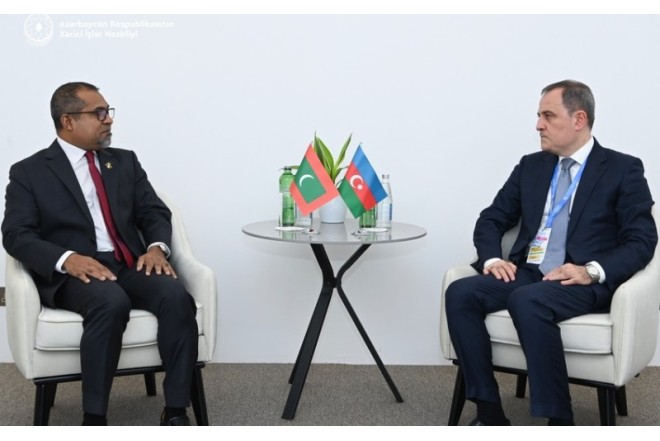 Azərbaycan xarici işlər naziri Ceyhun Bayramov Bakıda maldivli həmkarı Abdulla Xalil ilə görüşüb.