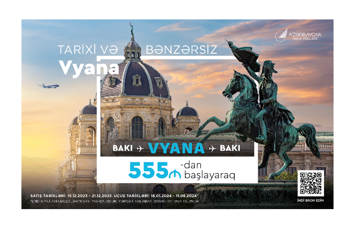 Azərbaycanın milli aviadaşıyıcısı AZAL Bakı və Vyana arasında uçuşlar üçün yeni endirim aksiyasına start verib. Aksiya çərçivəsində aviabiletlərin qiyməti Bakı-Vyana-Bakı marşrutu üzrə 555 manatdan, Vyana-Bakı-Vyana marşrutu üzrə isə 299 avrodan başlayır.