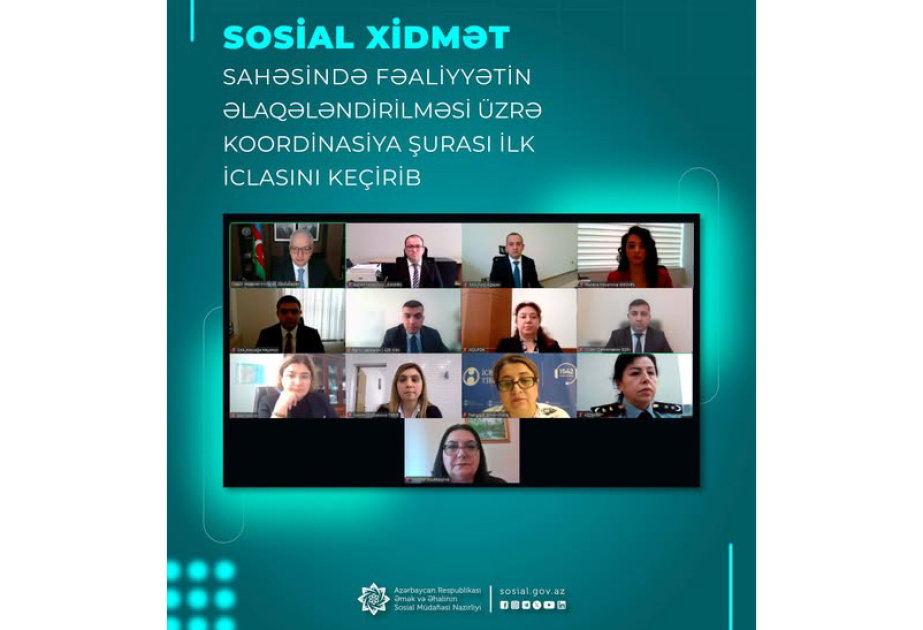 Prezident İlham Əliyevin Sərəncamı ilə təsdiq edilmiş “Azərbaycan Respublikasında sosial xidmətin inkişafına dair 2023-2025-ci illər üçün Dövlət Proqramı”nın icrası ilə bağlı Tədbirlər Planına əsasən sosial xidmət sahəsində fəaliyyətin əlaqələndirilməsi məqsədilə yaradılmış Koordinasiya Şurasının videokonfrans formatında ilk iclası olub.