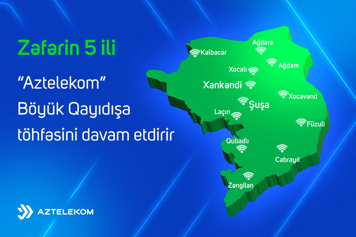 “Azərbaycan Respublikasının işğaldan azad edilmiş ərazilərinə Böyük Qayıdışa dair I Dövlət Proqramı” çərçivəsində Qarabağ və Şərqi Zəngəzur iqtisadi rayonlarında rabitə və internet infrastrukturunun qurulması istiqamətində ardıcıl işlər görür.