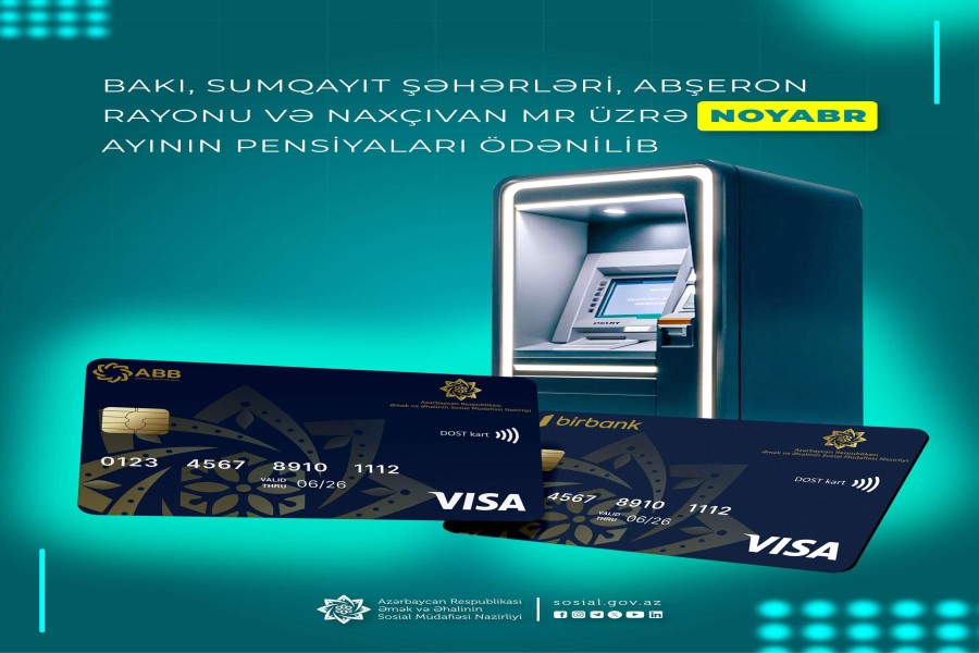 Əmək və Əhalinin Sosial Müdafiəsi Nazirliyinin tabeliyində Dövlət Sosial Müdafiə Fondu tərəfindən Bakı, Sumqayıt şəhərləri və Abşeron rayonu üzrə noyabr ayının pensiyaları ödənilib.