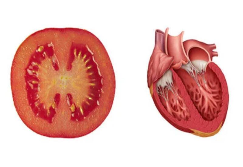 Pomidor kəsildikdə içindəki bölmələr ürəyin kameralı quruluşuna çox oxşayır. Bu meyvədə likopen adlı antioksidant var. Likopen ürək damar sağlamlığını qorumaqda mühüm rol oynayır.