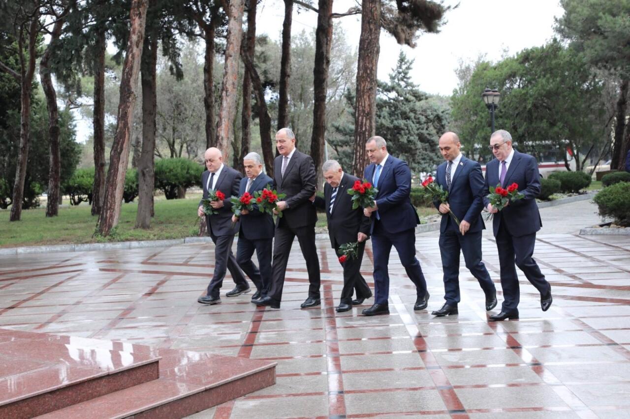 Öncə tədbir iştirakçıları Ulu Öndərin Heydər Əliyev parkında ucalan abidəsini ziyarət edib, abidə önünə tər güllər düzərək ehtiramlarını ifadə ediblər. Müasir Azərbaycan dövlətinin banisi Ümummilli Lider Heydər Əliyevin, suveren və müstəqil dövlətçiliyimiz uğrunda canını qurban verən qəhrəman Vətən övladlarının əziz xatirəsi bir dəqiqəlik sükutla yad edilmiş və Azərbaycan Respublikasının Dövlət Himni səsləndirilmişdir.