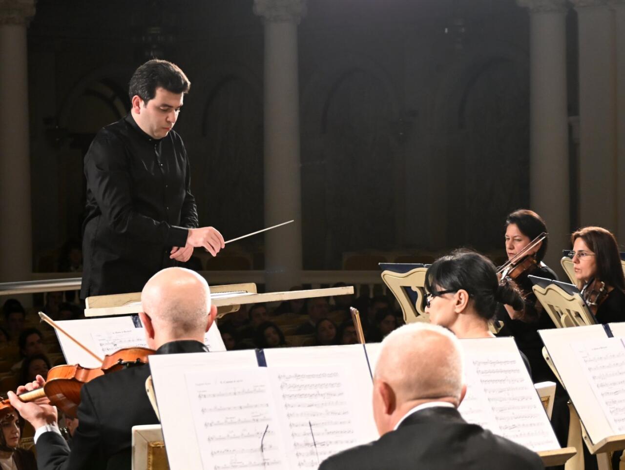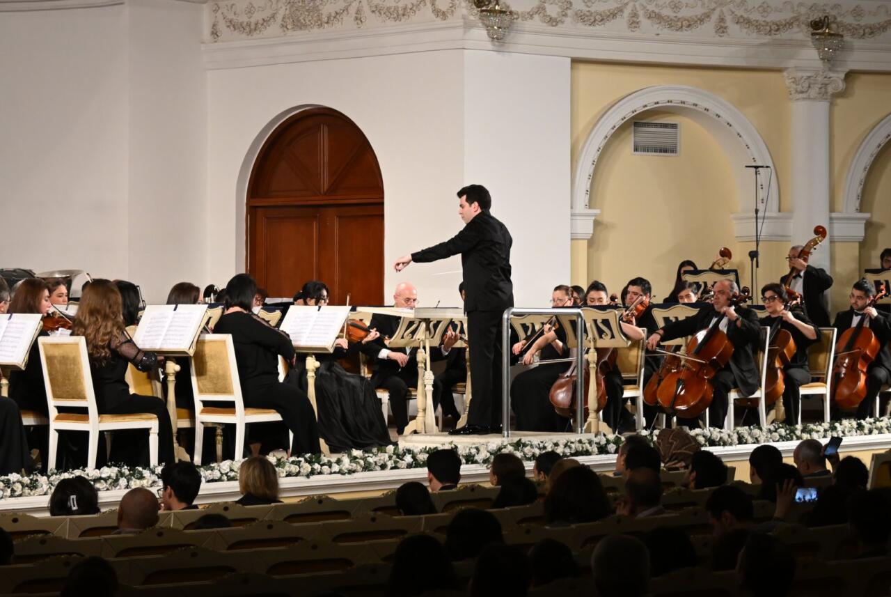 Musiqili gecədə Qara Qarayevin "İldırımlı yollarla" baletindən "Adagio", Azər Dadaşovun "Babək" baletindən fraqmentlər, Nazim Əliverdibəyovun klarnet və orkestr üçün "Elegiya" əsəri, eləcə də Fikrət Əmirovun "Nəsimi haqqında dastan"ı səsləndirilib.