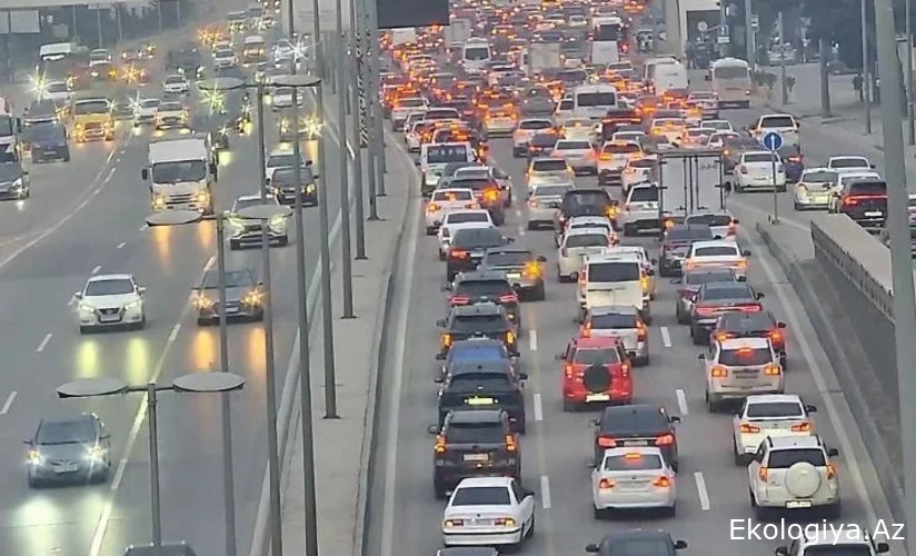Bakının bir sıra yollarında nəqliyyatın sıxlığı yaranıb.