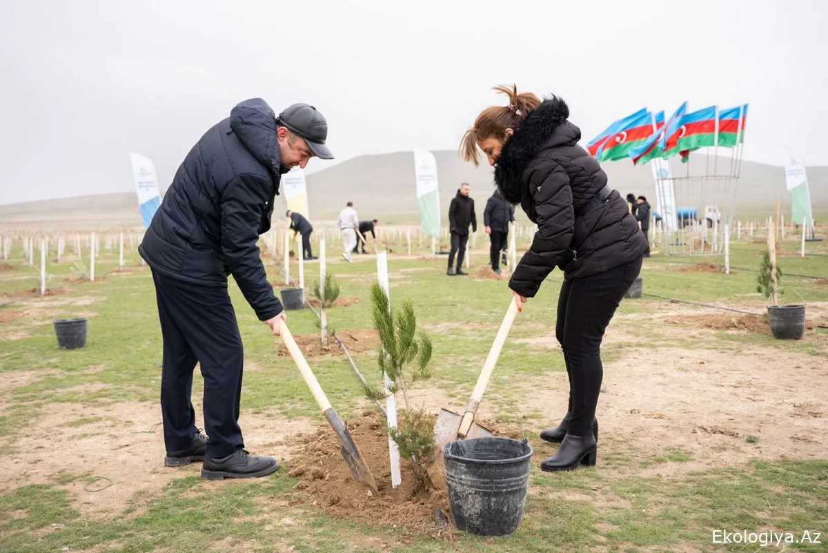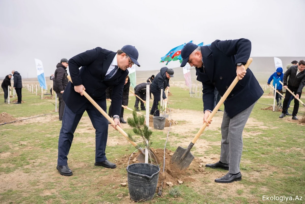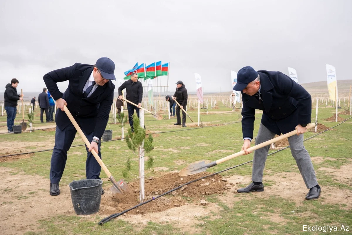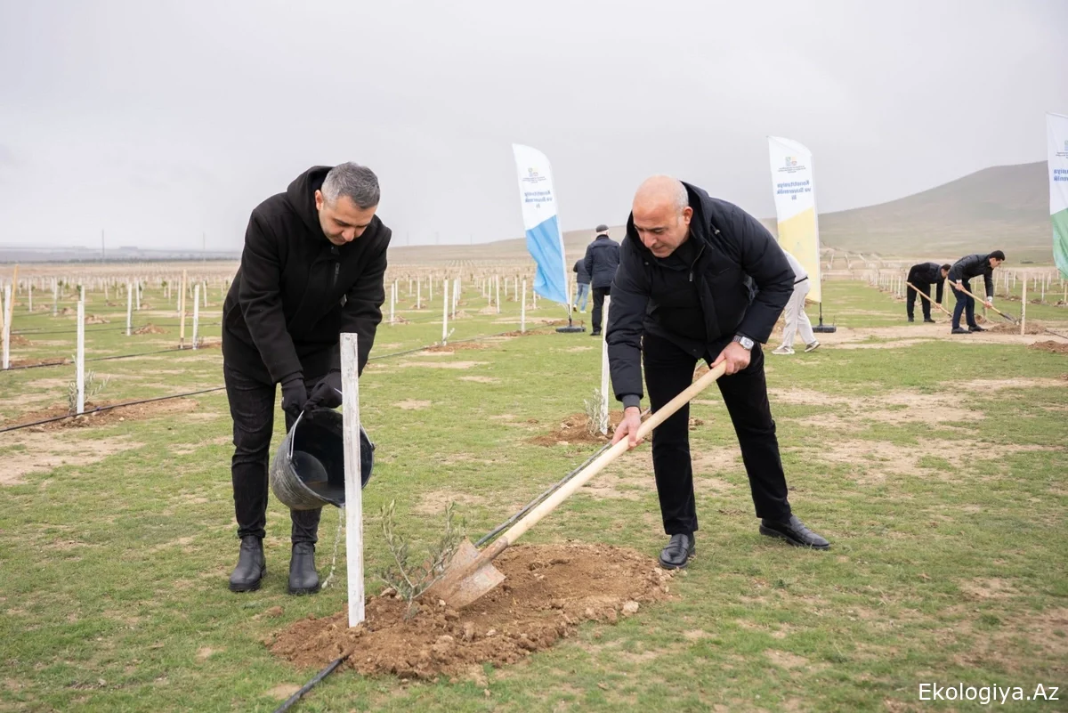 Tədbir çərçivəsində Abşeron yarımadasının torpaq-iqlim şəraitinə uyğun Eldar şamı və zeytun ağacları əkilib.