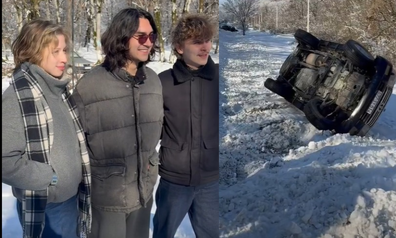 İsmayıllıda qəzaya düşən turistlər sağ-salamat xilas olduqdan sonra selfi ediblər.
