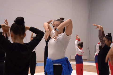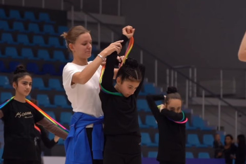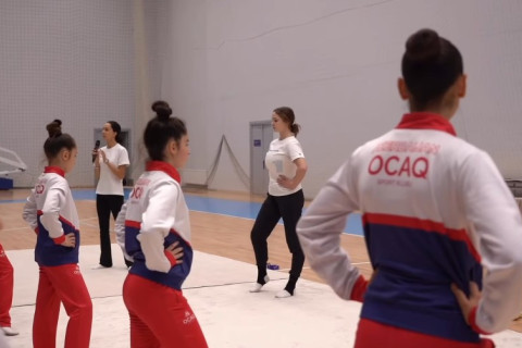 Azərbaycanın bədii gimnastika üzrə böyüklərdən ibarət qrup hərəkətləri komandası Şəki Olimpiya İdman Kompleksində kiçik gimnastlar üçün ustad dərsi keçirib.