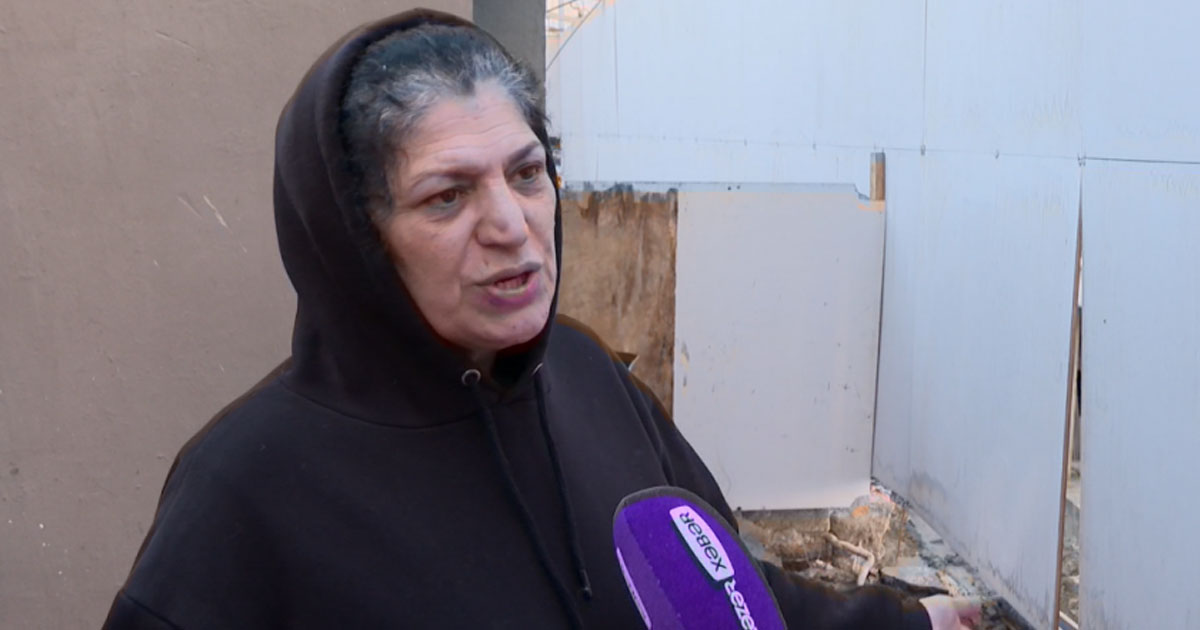 Ev sahibi Fəridə Əliyeva iddia edir ki, onun evi yaxınlıqda bina tikildiyi üçün belə təhlükəli vəziyyətə düşüb. Hətta hamamın kafeli də qopub tökülüb.