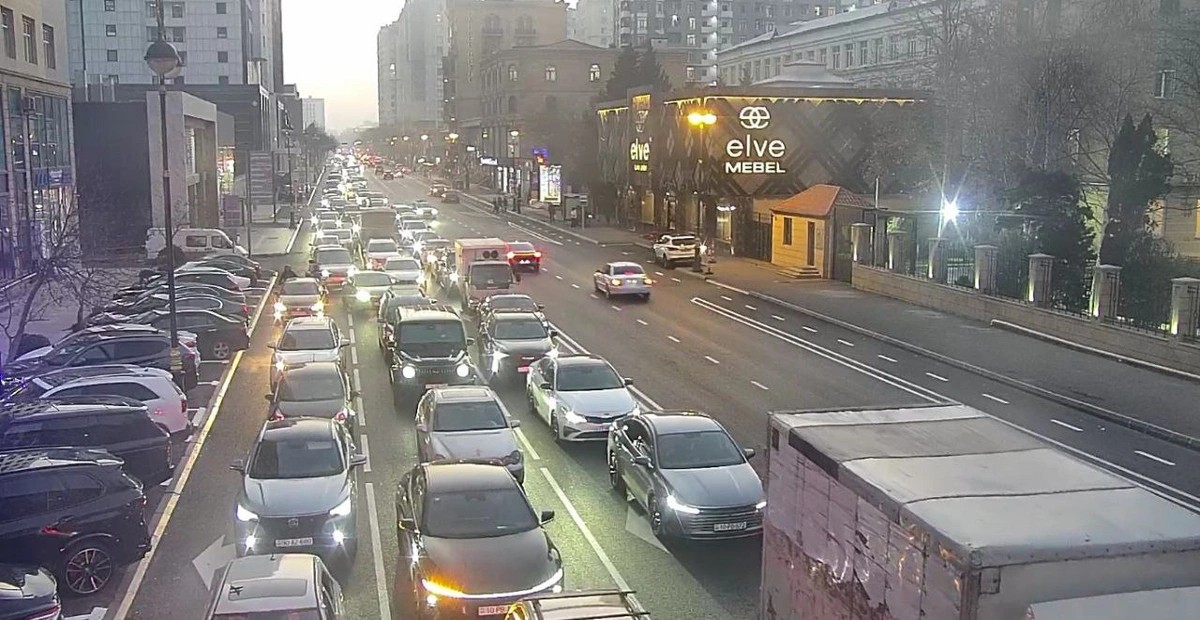 Bakının bir sıra yollarında nəqliyyatın sıxlığı müşahidə olunur.