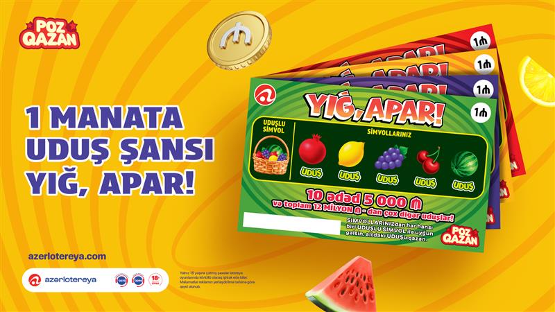 “Yığ, apar!”da sadəcə 1 manata toplam 12 milyon manatdan çox uduş şansı var. 10 ədəd biletdə isə 5000 manatlıq böyük uduş sahiblərini gözləyir.