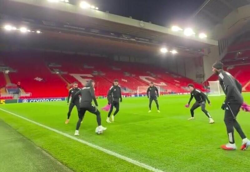 UEFA Çempionlar Liqasının Liqa mərhələsinin sonuncu - VIII turu çərçivəsində "Liverpul"la üz-üzə gələcək "Qarabağ" futbol komandası qarşılaşma ərəfəsində oyunöncəsi məşqini "Enfild" stadionunda keçirib.