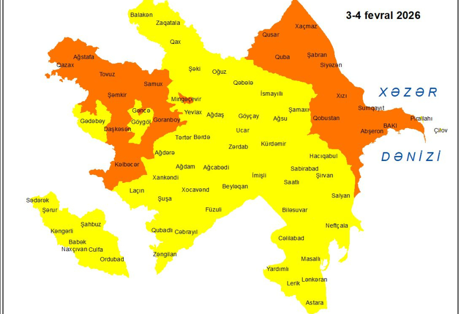 Fevralın 3-4-də Bakıda və Abşeron yarımadasında, eyni zamanda, əksər bölgələrdə gözlənilən küləkli hava şəraiti ilə bağlı sarı və narıncı xəbərdarlıq verib.