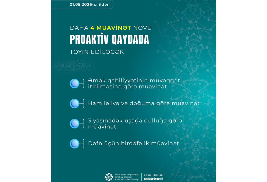 Həmin müavinət növlərinin proaktiv qaydada təyin edilməsi prosesinə 2026-cı ilin mayın 1-dən başlanacaq.