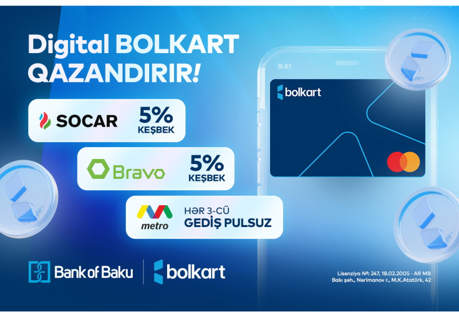 Rəqəmsallaşma yolunda inamla addımlayan Bank of Baku yeni təqdim etdiyi rəqəmsal məhsulu – “Digital Bolkart” kartı üzrə müştərilər üçün keşbek kampaniyasına start verir.