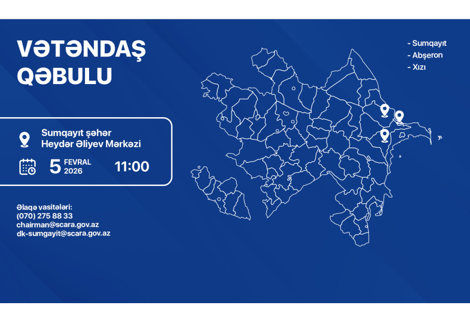 Mərkəzi icra hakimiyyəti orqanları və digər idarəetmə qurumlarının rəhbərlərinin şəhər və rayonlarda vətəndaşların qəbulu cədvəlinə uyğun olaraq, Dini Qurumlarla İş üzrə Dövlət Komitəsinin sədri Ramin Məmmədov fevralın 5-də Sumqayıt şəhəri, Abşeron və Xızı rayonlarından olan vətəndaşlarla görüşəcək.