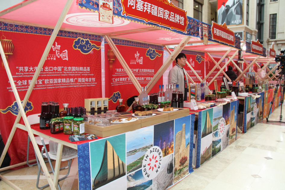 Azərbaycan məhsulları Çinin Kommersiya Nazirliyinin və Pekin Şəhər Xalq Hökumətinin birgə təşəbbüsü ilə Pekində keçirilən xarici məhsulların sərgi-yarmarkalarında nümayiş olunur. Çin Yeni ili ərəfəsində təşkil edilən və “Hamı üçün böyük bazar: Çinə ixrac” şüarı altında keçirilən beynəlxalq premium məhsullar sərgisi şopinq festivalı xarakteri daşıyır. Ölkəmizin Çində ticarət nümayəndəsi aparatının dəstəyi ilə Pekindəki Azərbaycan Ticarət Evi paytaxtın “Ritan” və “Wanyuan - Wangfujing Outlet” ticarət mərkəzlərində “Made in Azerbaijan” brendi ilə istehsal olunan məhsulları, o cümlədən şərab və digər spirtli içki növlərini, nar şirələrini, kompotları, mürəbbələri və çayı xüsusi pavilyonlarda təqdim edir. Bundan başqa, pavilyonlarda Azərbaycan şirniyyatları və milli mədəniyyətimizə aid suvenirlər də təqdim olunur.