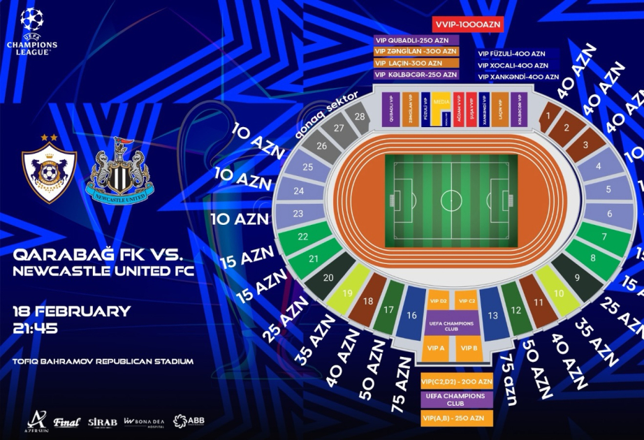 UEFA Çempionlar Liqasının pley-off mərhələsində Bakıda “Qarabağ” və İngiltərənin “Nyukasl” komandaları arasında keçiriləcək ilk oyuna biletlərin qiyməti açıqlanıb.