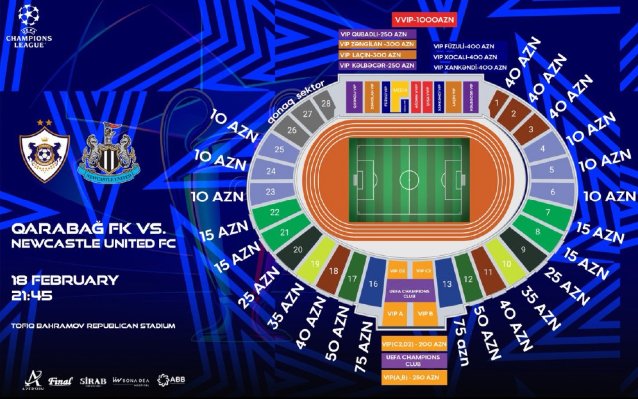 "Qarabağ" - "Nyukasl" oyununun biletləri satışa çıxır - 10 manatdan 1 000 manata qədər