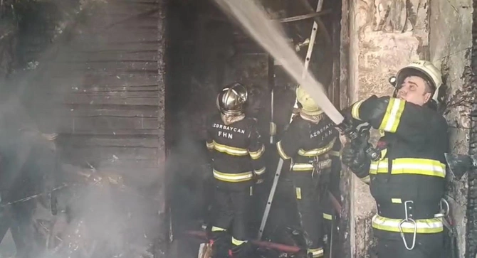 Bakının mərkəzindəki YANĞIN SÖNDÜRÜLDÜ