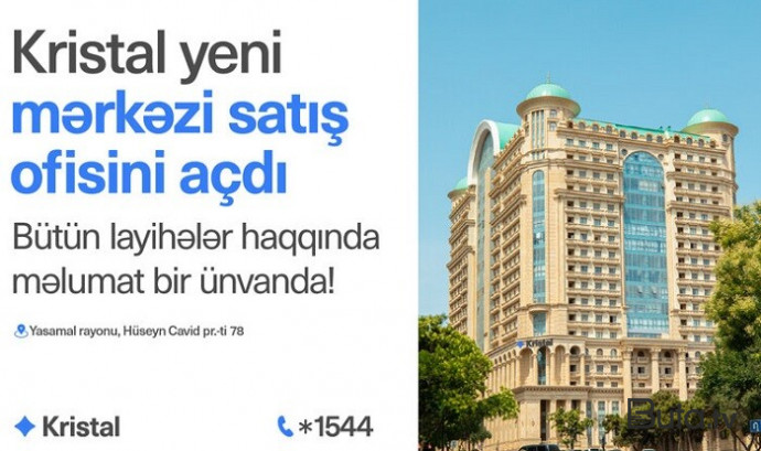 "Kristal" müştərilər üçün daha rahat və çevik xidmət imkanları yaratmaq məqsədilə yeni Mərkəzi satış ofisini istifadəyə verib. Ofis "Elmlər Akademiyası" metro stansiyası yaxınlığı, Hüseyn Cavid prospekti 78, "Merida Premium" layihəsində yerləşir.Yeni satış ofisi "Kristal"ın Bakı, Sumqayıt və Xırdalan şəhərlərində yerləşən layihələr barədə məlumatı vahid məkanda təqdim edir. Müştərilər burada layihələrin ümumi konsepti, mənzil planları, qiymətlər və mövcud satış şərtləri ilə ətraflı tanış ola, fərqli variantları müqayisə edə və büdcələrinə ən uyğun seçimi edə bilərlər. Bu xidmət ödənişsiz əmlak konsultasiyası formatında həyata keçirilir və hər bir alıcıya fərdi yanaşma təqdim olunur. Mərkəzi satış ofisində "City Garden Narimanov", "Park Yasamal", "Sahil Park Sumqayıt", "Biləcəri yaşayış kompleksi", "Kristal Towers", "Yeni Sumqayıt", "Highland Residence" və "Park Xırdalan" layihələri üzrə detallı məlumat əldə etmək mümkündür. Hazırda şirkət müxtəlif satış mexanizmləri təklif edir. Müştərilərə 15%-dən başlayan ilkin ödənişlə 20 ilədək ipoteka, 12 və 36 ayadək faizsiz daxili kredit imkanları təqdim olunur. Onu da qeyd edək ki, hazırda “Evini hissə-hissə al” kampaniyası da davam edir. Bu model kredit və faiz olmadan hissəli ödənişlə mənzil sahibi olmaq imkanı yaradır. Müştərilər bütün bu imkanları bir məkanda dəyərləndirərək öz gələcək planlarına ən uyğun qərarı verə bilərlər. https://youtube.com/shorts/rNBO-VERyIc“Kristal”ın Mərkəzi satış ofisi mənzil seçimini daha rahat, şəffaf və əlçatan edir. Ətraflı məlumat üçün satış ofisinə yaxınlaşmaq və ya *1544 qısa nömrəsinə zəng etmək kifayətdir. Ətraflı: *1544 Ünvan: Yasamal rayonu, Hüseyn Cavid prospekti 78.