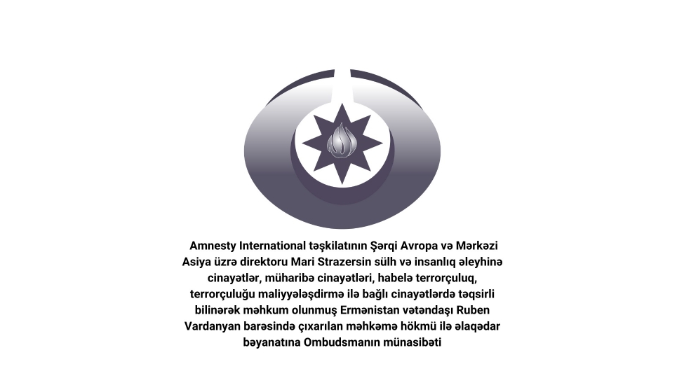 Beynəlxalq insan hüquqları hüququnun müddəaları və beynəlxalq məhkəmə təcrübəsinə tam uyğun olaraq keçirilmiş məhkəmə prosesinin yekunu olaraq məhkəmə tərəfindən Ruben Vardanyan barəsində çıxarılmış hökmlə əlaqədar Amnesty International beynəlxalq qeyri-hökumət təşkilatı rəsmisinin yaymış olduğu bəyanat istər hüquqi, istərsə də mənəvi baxımdan yanlış, qeyri-obyektiv və qərəzlidir.