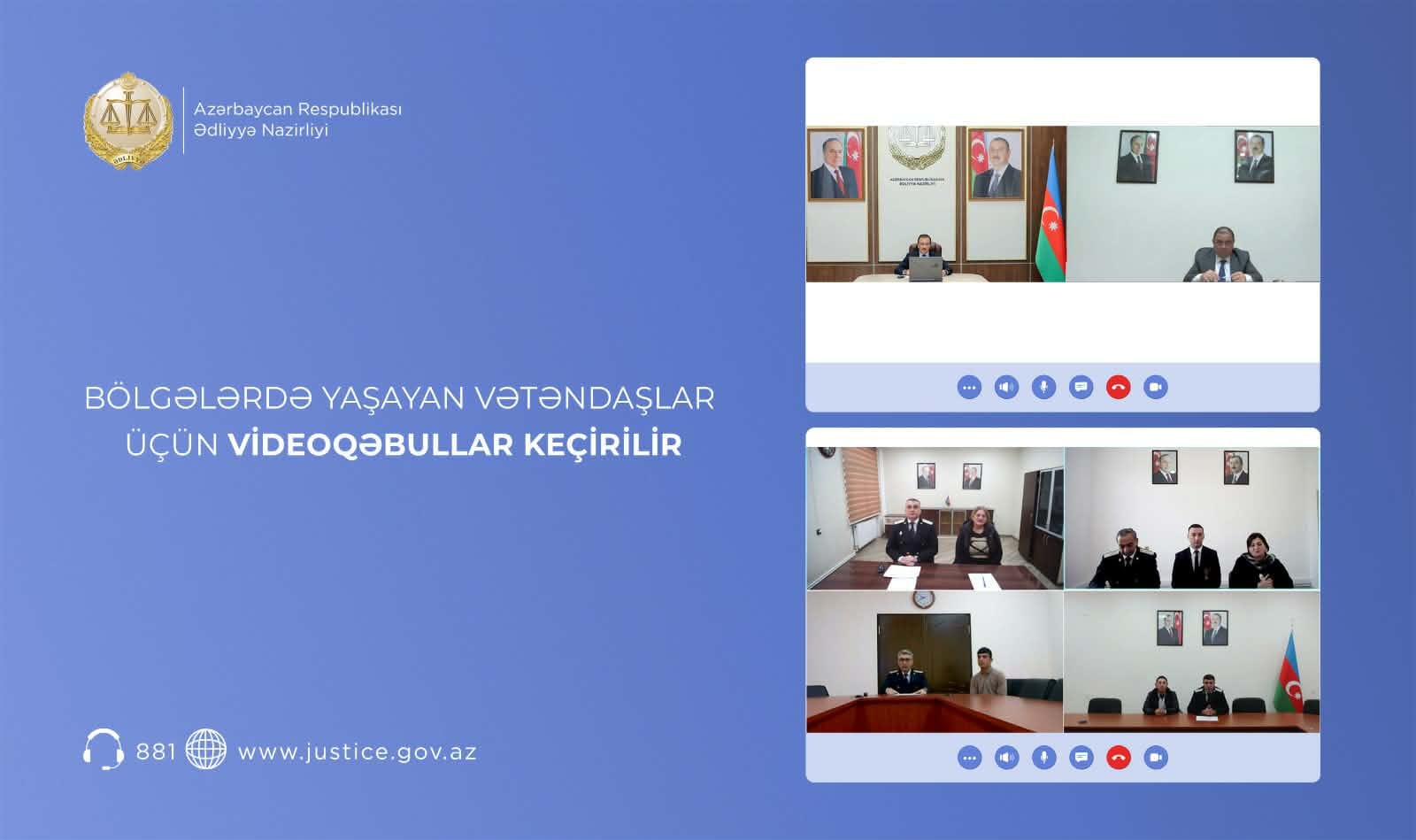 Ədliyyə Nazirliyi vətəndaş məmnunluğunun artırılması, ədliyyə orqanlarına əlçatanlığın təmin olunması, regionlarda yaşayan vətəndaşların müraciətlərinə operativ və yerində baxılması məqsədilə mütəmadi olaraq videoqəbullar təşkil edir.