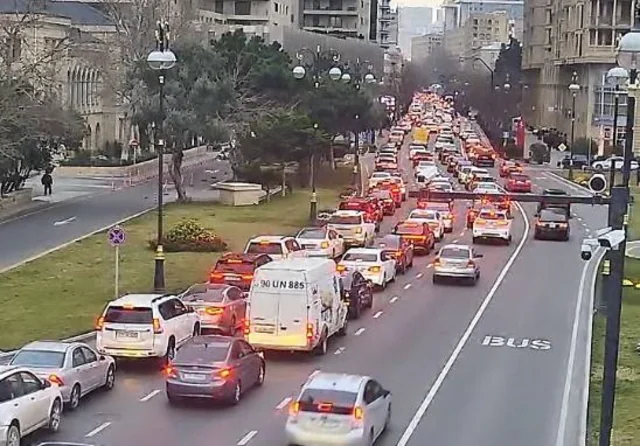 Bakının bir sıra yollarında nəqliyyatın sıxlığı müşahidə olunur.