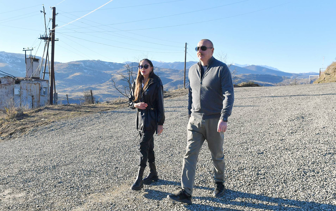 Azərbaycan Prezidenti İlham Əliyev, birinci xanım Mehriban Əliyeva və qızları Arzu Əliyeva bu gün Xocalı rayonunun Xanabad kəndində görülmüş işlərlə tanış olublar.