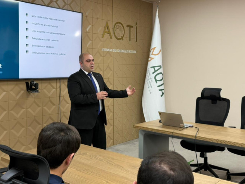 Azərbaycan Qida Təhlükəsizliyi İnstitutunun (AQTİ) Təlim Mərkəzinin peşəkar mütəxəssisləri tərəfindən növbəti təlim “Qida sahəsində gigiyena tələbləri” mövzusunda təşkil olunub.