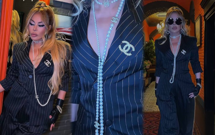 Kazımova qara geyimini "Chanel" markasına məxsus aksesuarlarla rəngləndirib.