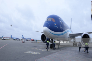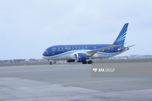 APA xəbər verir ki, AZAL-a məxsus “Boeing 787 Dreamliner” təyyarəsi Heydər Əliyev Beynəlxalq Aeroportuna enib.