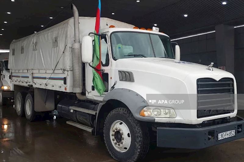 Azərbaycan Prezidentinin tapşırığına uyğun olaraq Fövqəladə Hallar Nazirliyinin avtomobilləri ilə İran İslam Respublikasına yola salınan humanitar yardıma 10 ton un, 6 ton düyü, 2,4 ton şəkər, 4 tondan artıq su, 600 kq-a yaxın çay, 2 tona yaxın dərman və tibbi ləvazimatlar daxildir.