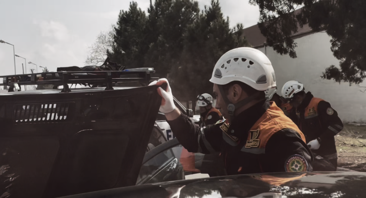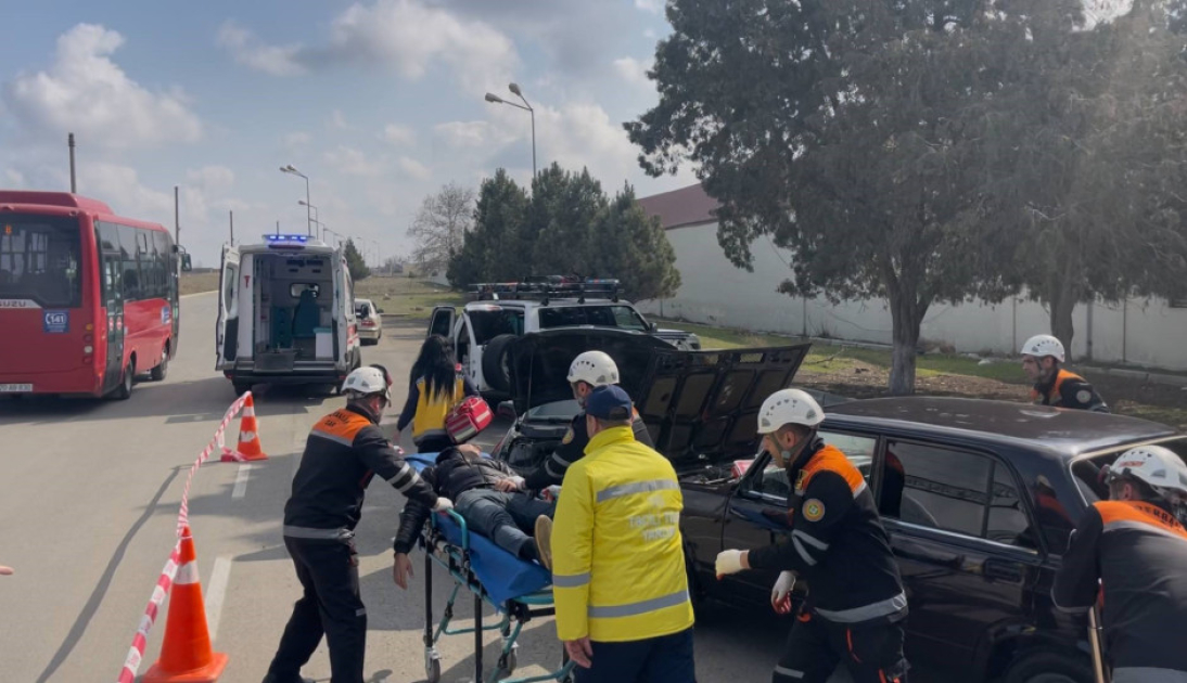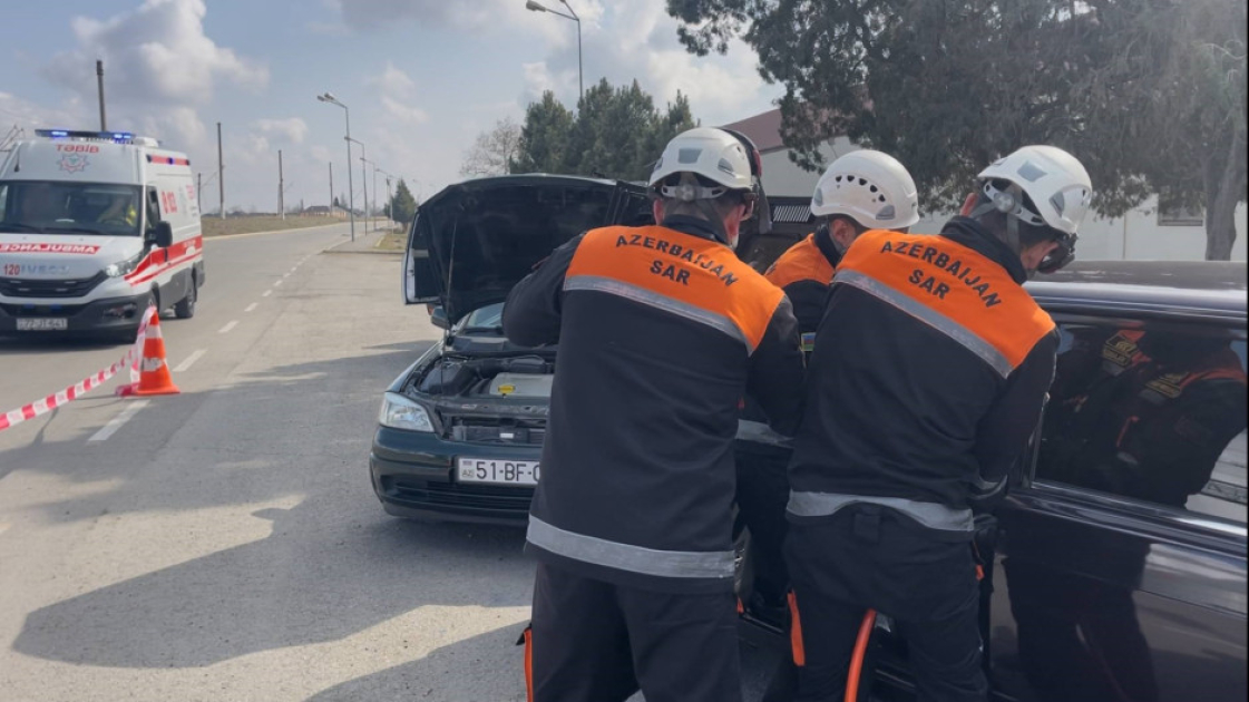 Təlim zamanı şərti olaraq baş vermiş nəqliyyat qəzası ilə əlaqədar “hadisə yerinə” operativ çatan xilasedicilər xüsusi xilasetmə vasitələrindən istifadə etməklə deformasiyaya uğramış avtomobildən “zərərçəkmişləri xilas edərək” onlara “təxirəsalınmaz ilkin yardım göstərib” və təcili tibbi yardım briqadasına təhvil veriblər.