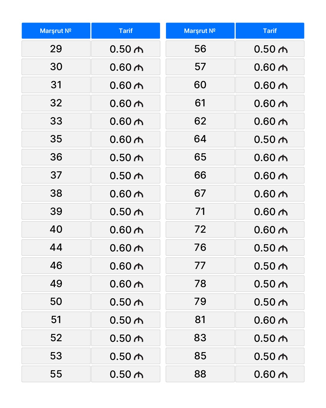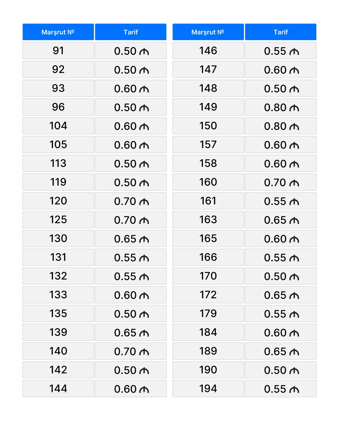 Bakı və paytaxtətrafı marşrut avtobuslarında yenilənmiş nağdsız gedişhaqqı tarifləri müəyyənləşib.