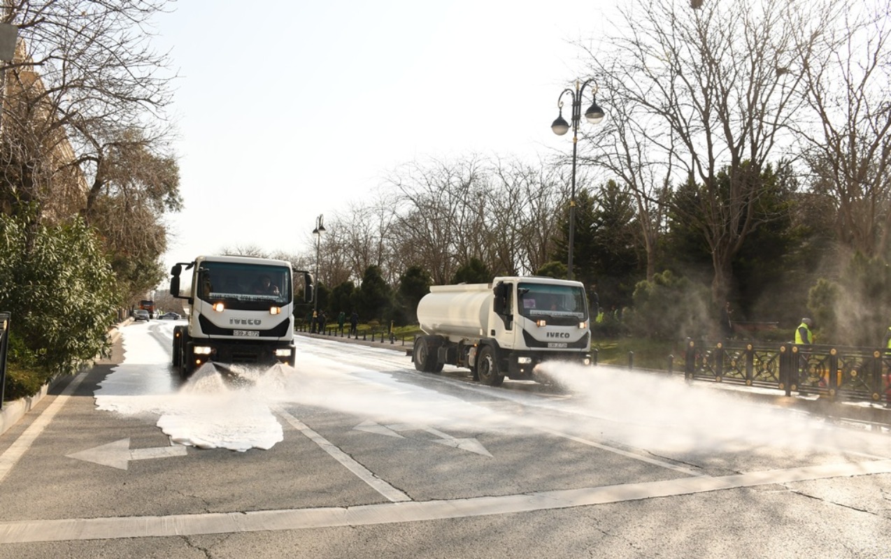 "Cebheinfo.az" xəbər verir ki, Bakı Şəhər İcra Hakimiyyətinin Mətbuat xidmətindən verilən məlumata görə paytaxtın kommunal təsərrüfat xidmətlərinin texnikası ilə əsas küçə və prospektlər, həm də məhəllədaxili və ara yollar bitki və canlılara ziyansız yuyucu maddələrlə yuyulub. Xidmətin əməkdaşları tərəfindən prospekt və küçələrin, səki kənarlarının, bordyurların və buradakı işıq dirəklərinin, yol kənarındakı məhəccərlərin, park və istirahət yerlərində oturacaqların yuyulması həyata keçirilib, həyət və yaşayış məhəllələrində təmizlik işləri görülüb.