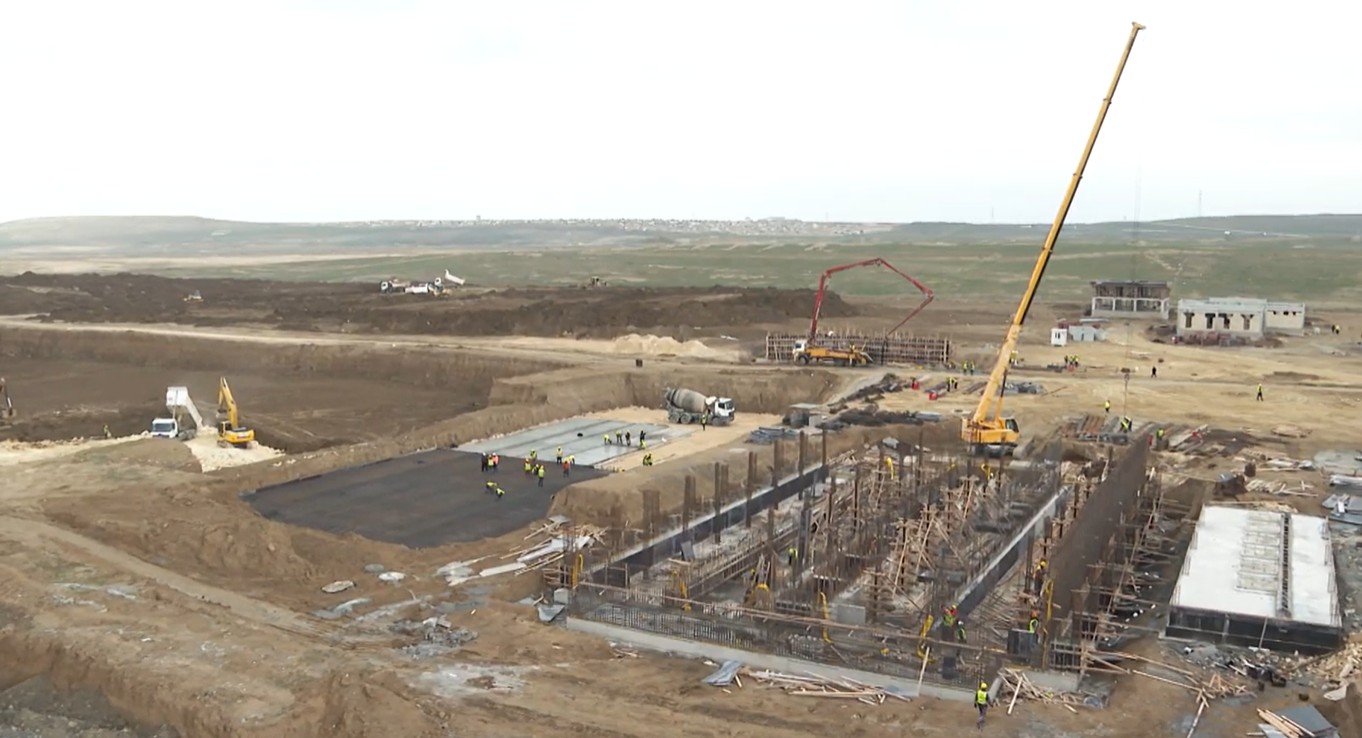 Layihəyə uyğun olaraq qurğunun bir sıra əsas və yardımçı hissələrinin tikintisi tamamlanıb, iri barmaqlığın qurşaq tirlərinin betonlama prosesi yekunlaşıb və hazırda son mərhələ olaraq qazıntı işləri aparılır. Kiçik barmaqlıq qurğusu üzrə qazıntı artıq başa çatdırılıb. Havalandırma sistemli qum və yağ tutucuda döşəmənin inşası tamamlanıb, divarların dəmir-betonla hörülməsi davam etdirilir. Blover binasının bünövrəsi tökülüb, sütun və divarların tikintisi icra olunur. Mexaniki cihaz binası yüksək həcmdə tullantı qazları orta təzyiqlə nəqletmə funkasiyasını daşıyır. Biosfor hovuzunun su bölüşdürücüsündə döşəmə betonunun tikintisi başa çatıb. Havalandırma hovuzunda qazıntı aparılır, eyni zamanda sağlamlaşdırıcı lay üzrə qaya dolğusu vurulur. Lil susuzlaşdırma qurğusunda bünövrənin tökülməsi, emalatxana, inzibati, gözətçi binalarının betonlama prosesi yekunlaşıb.