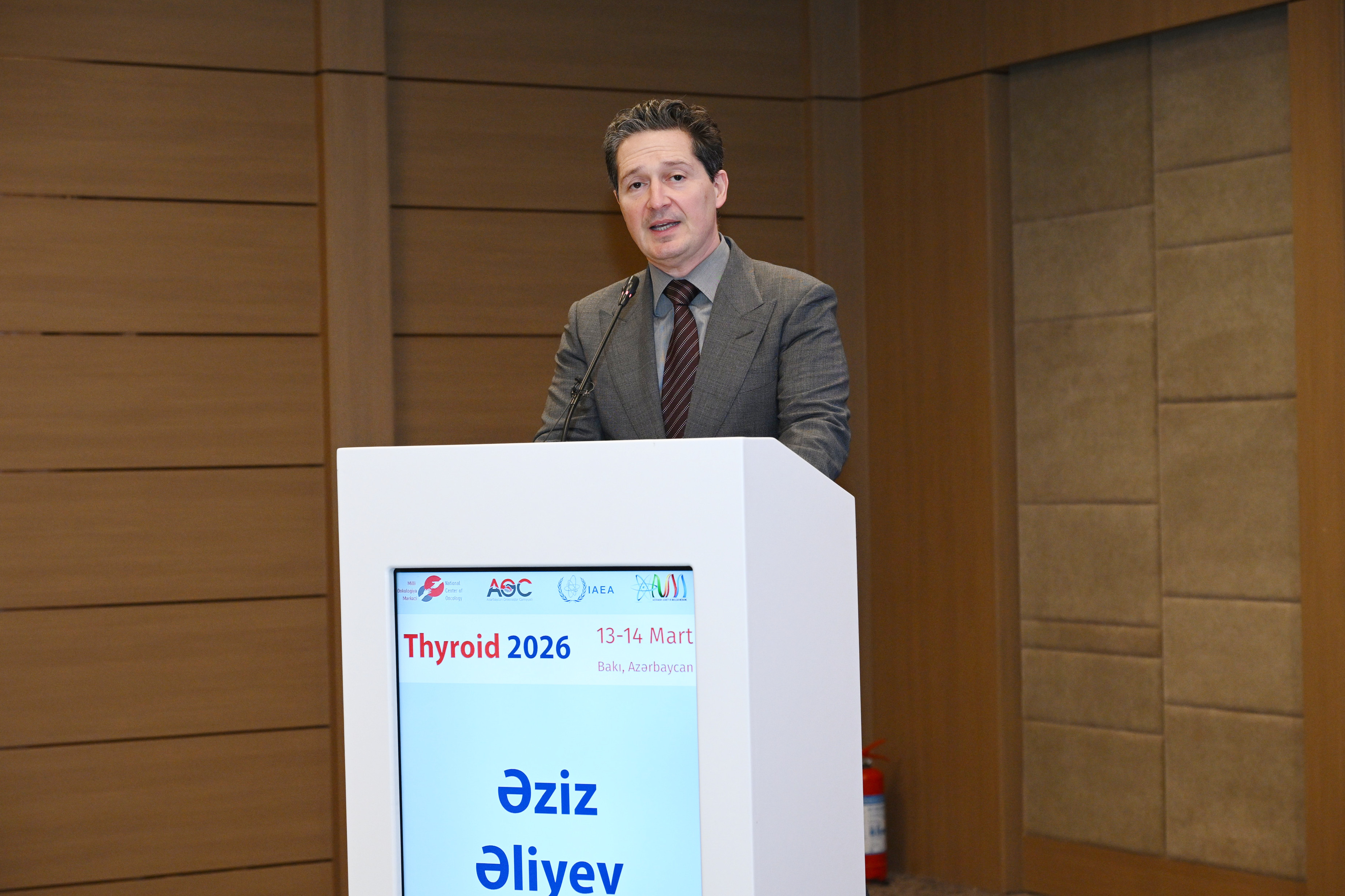 Daha sonra Beynəlxalq Atom Enerjisi Agentliyinin nümayəndəsi, professor Françesko Giammarile agentliyin onkoloji xidmətlərin inkişafına verdiyi töhfələrdən bəhs edib.