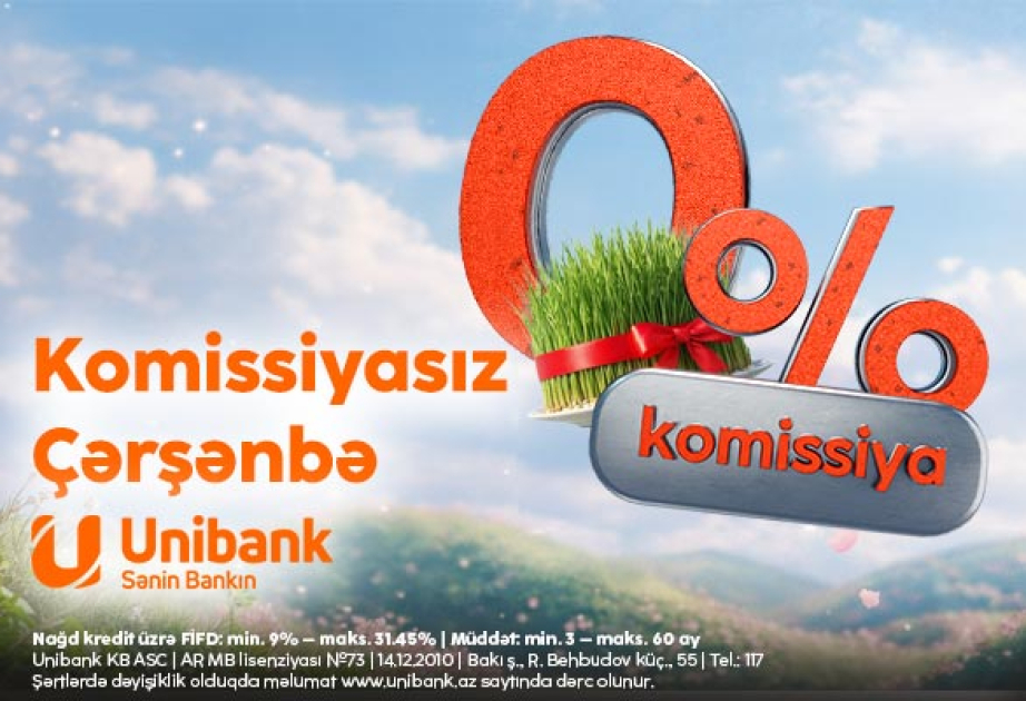“Unibank” Novruz bayramı münasibətilə xalqımızı təbrik edir, sevinc və ruzi - bərəkət arzulayır. Bayramla əlaqədar bank 3 günlük komissiyasız kredit aksiyası keçirir. Martın 17-dən 19-dək “Unibank”dan kredit rəsmiləşdirən hər kəs nağd krediti 0 faiz komissiya ilə əldə edəcək.