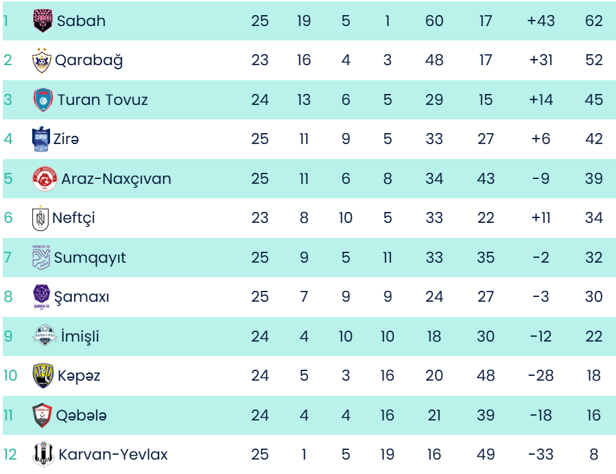 Qeyd edək ki, turun əvvəlki görüşlərində "Araz-Naxçıvan" "Şamaxı"nı, "Zirə" isə "Karvan-Yevlax"ı 1:0, "Sabah" isə "Sumqayıt"ı 3:1 hesabı ilə üstələyib.