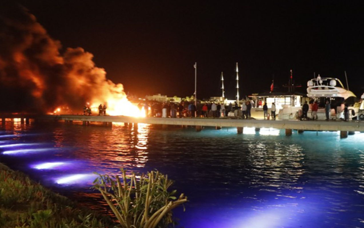 Türkiyənin Muğla vilayətinin Bodrum rayonunda limandakı yaxtaların birində güclü yanğın baş verib.