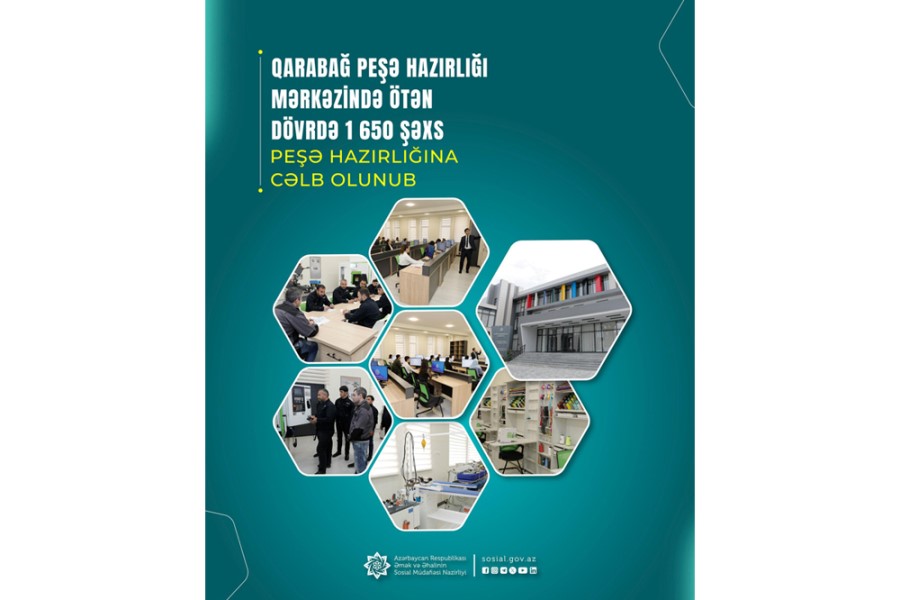Əmək və Əhalinin Sosial Müdafiəsi Nazirliyinin tabeliyində Dövlət Məşğulluq Agentliyinin Qarabağ Peşə Hazırlığı Mərkəzi tərəfindən ötən dövrdə ümumilikdə 1650 şəxs peşə hazırlığı kurslarına cəlb olunub.