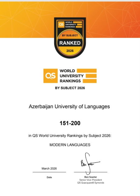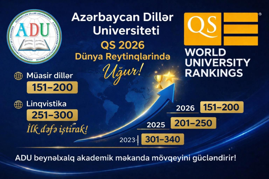 Bildirilib ki, ADU əvvəlki illərlə müqayisədə dinamik inkişaf nümayiş etdirib. Belə ki, universitet 2023 və 2024-cü illərdə “Müasir dillər” sahəsi üzrə 301–340 aralığında qərarlaşdığı halda, 2025-ci ildə mövqeyini 201–250 aralığına yüksəltmiş, 2026-cı ildə isə bu göstəricini daha da yaxşılaşdıraraq ilk 150-likdə yer alıb.