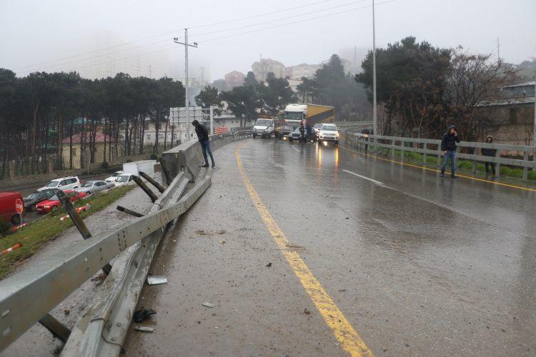 Paytaxtda yağışlı havada ara məsafəsi saxlamayan sürücü qəza törədib.