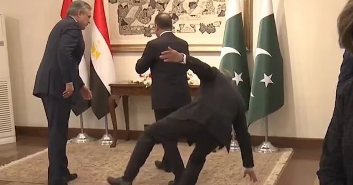NOCOMMENT.az xəbər verir ki, Pakistanın xarici işlər naziri Məhəmməd İshaq Dar misirli həmkarını qarşılayarkən kameralar önündə yıxılıb.