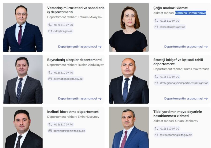 * Tibbi xidmətlərin təminatı və ekspertizası departamenti Nərgiz Ağayevadır.