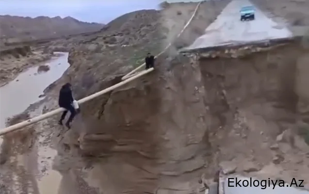 Ekologiya.az “Qafqazinfo” xəbər verir ki, çaya sel gəlməsi və körpünün yaxınlığından keçən yolun da yararsız hala düşməsi ilə iki sahil arasında gediş-gəliş kəsilib. Bəzi sakinlər çayın üzərindən 20-25 metr hündürlükdən keçən boru xətti ilə digər sahilə keçməyə çalışır ki, bu da onların həyatları üçün çox təhlükəlidir.
