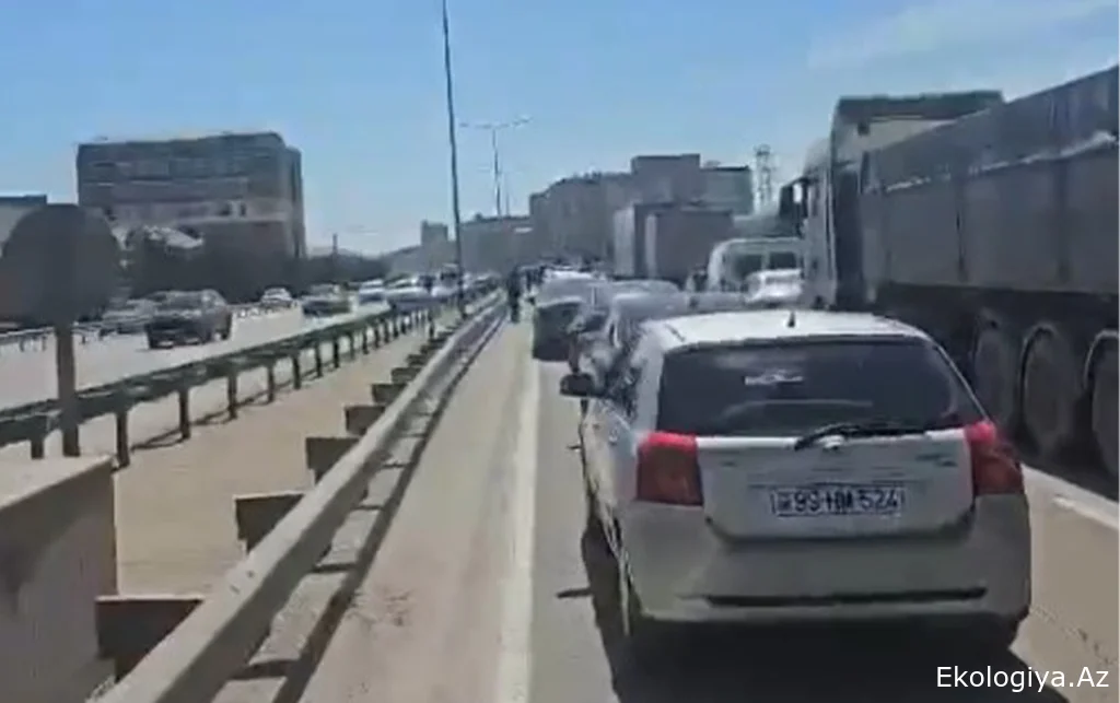 Ekologiya.az “Qafqazinfo”-a istinadla xəbər verir ki, tıxac  bir neçə kilometr məsafədə uzanıb.