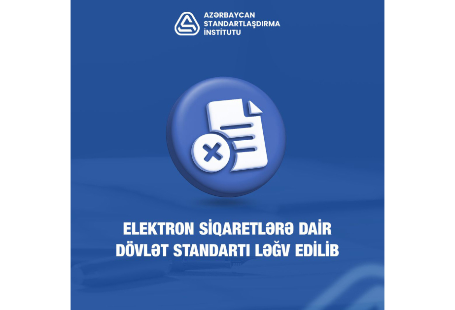 Azərbaycan Respublikasının Prezidenti yanında Antiinhisar və İstehlak Bazarına Nəzarət Dövlət Agentliyinin tabeliyində olan Azərbaycan Standartlaşdırma İnstitutu (AZSTAND) tərəfindən AZS 941:2023 “Elektron siqaret məhsulları. Ümumi texniki şərtlər” dövlət standartı ləğv edilib.