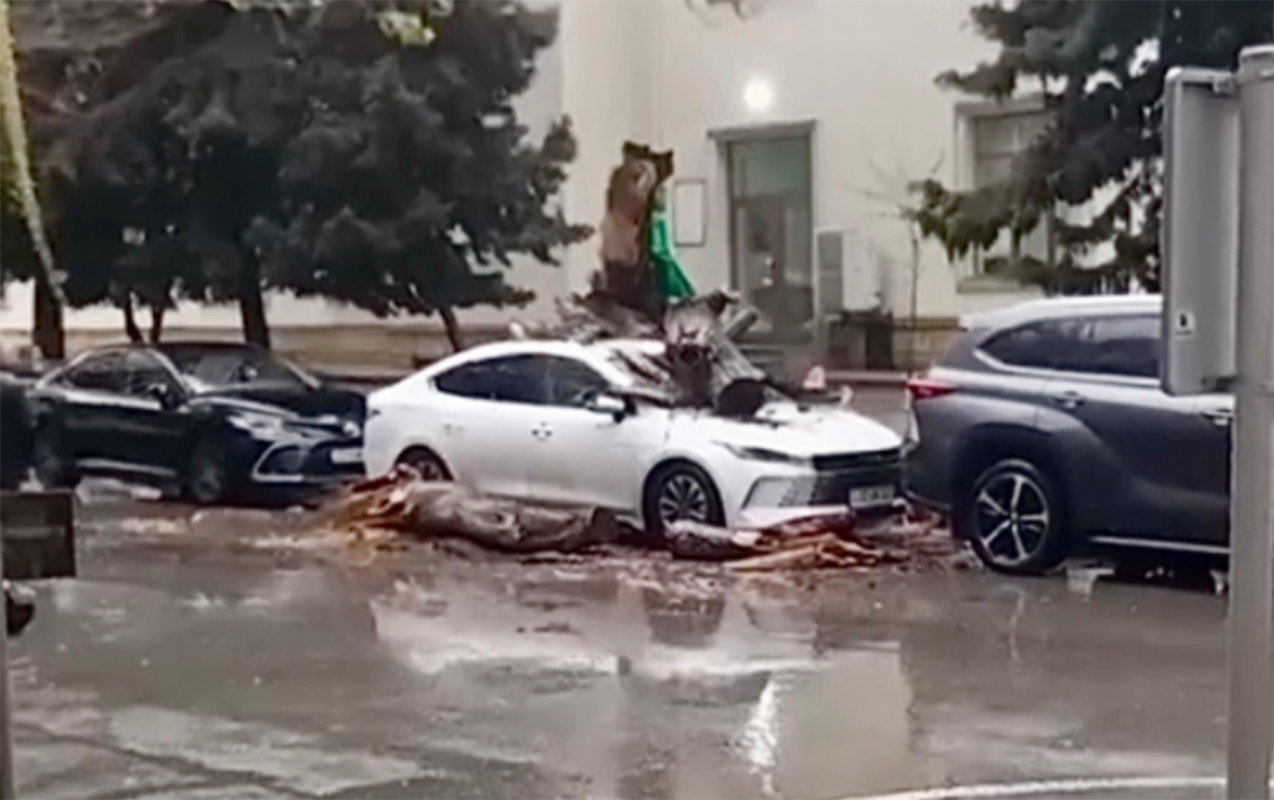 Nəhəng ağac “BYD”nin üstünə aşdı - VİDEO